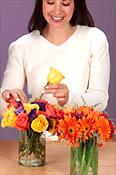 To keep your arrangements fresh, recut the stems every two to three days. Wash the vases and refill with fresh water and flower food. Keep out of drafts and direct sunlight.