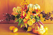 Creating striking arrangements in fall colors isn't complicated. The variety of flowers in autumnal hues makes it trouble-free.